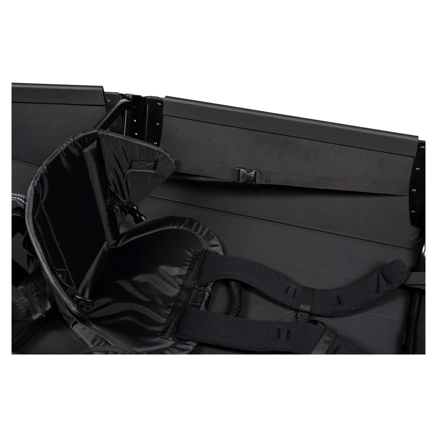 - Sitz mit gepolsterter Rückenlehne, D-Ring und abnehmbarer Signalpfeife